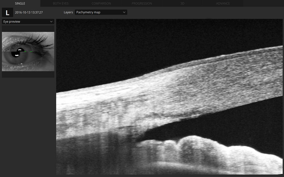 - Παχυμετρικός χάρτης του κερατοειδούς χρήσιμος στην προεγχειρητική εκτίμηση πριν από το Laser μυωπίας και στην πρώιμη διάγνωση παθήσεων όπως ο κερατόκωνος.