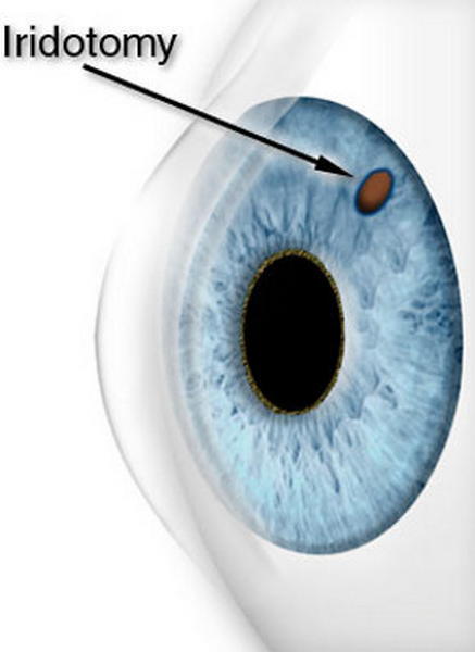 Με αυτό δημιουργείται μια μικρή οπή στην περιφέρεια του χρωματιστού διαφράγματος του οφθαλμού, που ονομάζεται ίριδα, με σκοπό την απρόσκοπτη ροή και έξοδο του ενδοφθάλμιου υδατοειδούς υγρού από τον οφθαλμό.